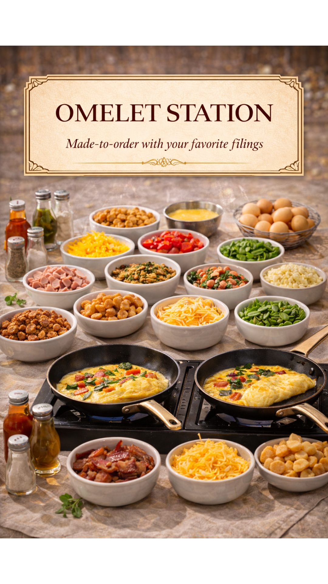 The morning opens with a made-to-order omelet station, where breakfast is prepared just the way you like it. Guests drift in at their own pace—coffee in hand, conversations picking back up, laughter carrying easily through the space. There’s no rush to start the day, only an invitation to be nourished and present. After breakfast, the day opens wide.